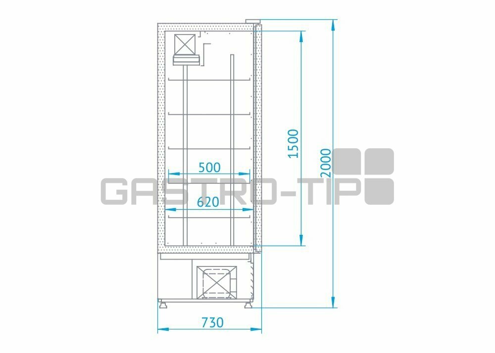 Skříň je vybavena 5ks polohovatelných roštů z plastem pokryté oceli. Automatické odtávání, chladící agregát Electrolux, standardní provedení dveří (pravé- na objednávku