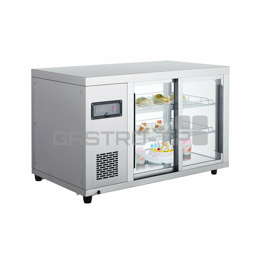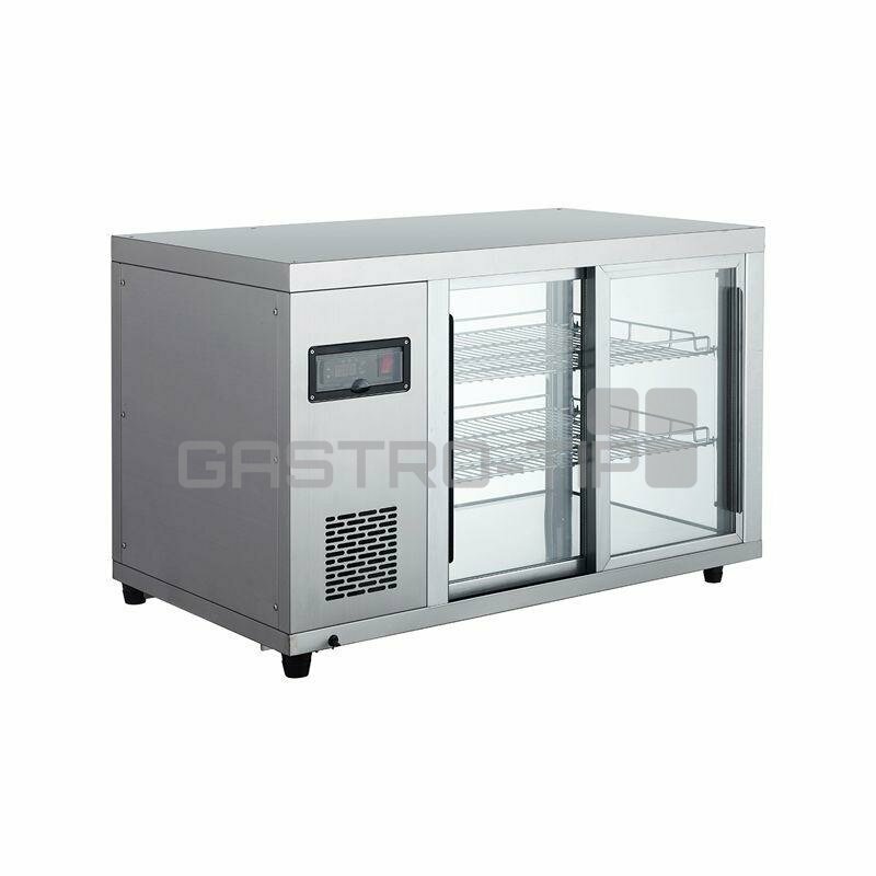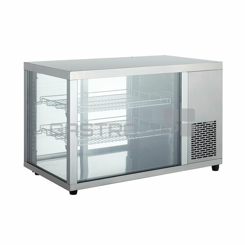 Chladicí pultová panoramatická vitrína RT-128L s ventilovaným chlazením, určena k prezentaci a prodeji potravin a nápojů. Vitrína je v elegantním nerezovém provedení a prosklená ze tří stran, má izolovaná skla. Ze strany obsluhy vybavena snadno posuvnými obslužnými dvířky s trojitým sklem a digitálním ovládáním a zobrazením teploty. Prezentaci uložených potravin umocňuje intenzivní 4× LED osvětlení umístěné v rozích vitríny (neohřívá vnitřní prostor a výrazně napomáhá prezentaci a prodeji ve všech patrech). Vitrína s vestavěným agregátem, ventilovaným chlazením s automatickým odtáváním, ovládána digitálním regulátorem se zobrazením teploty. Dvě chromové stavitelné police. Nastavitelné nožičky.