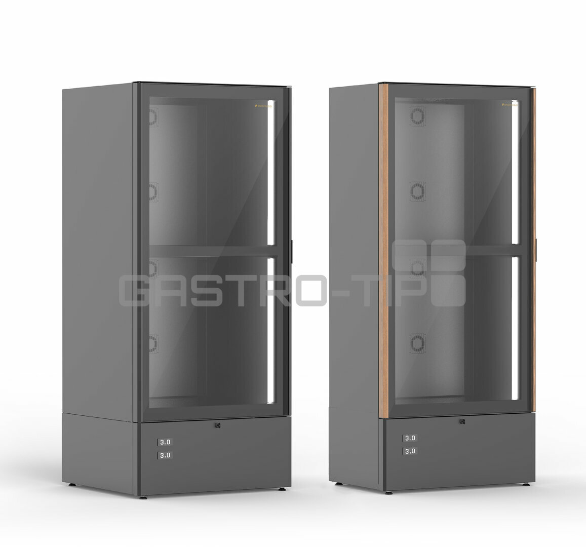 Profesionální dvouzónová vinotéka s plnou hloubkou a výškou, určená pro provozy, kde se spojuje maximální kapacita, přesná regulace teploty a elegantní vzhled. Model M7L_DV je vybaven technologií DUALVENT – dvěma nezávislými chladicími okruhy pro oddělené skladování bílých a červených vín. Dřevěná police dodává vitríně hřejivost, eleganci a podtrhuje její sofistikovaný vzhled. V ceně jsou 2 police na stojící láhve (každá po 65 ks). V případě zájmu je možnost zakoupení i jiných polic. Plášť je vyroben z recyklovaných materiálů, které lze po skončení životnosti opět ekologicky zpracovat.