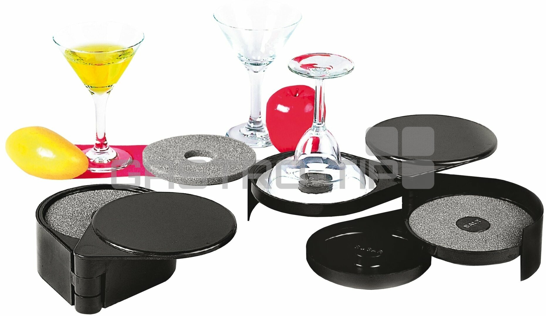 Třídílné zdobítko okrajů skleniček na sůl nebo cukr.