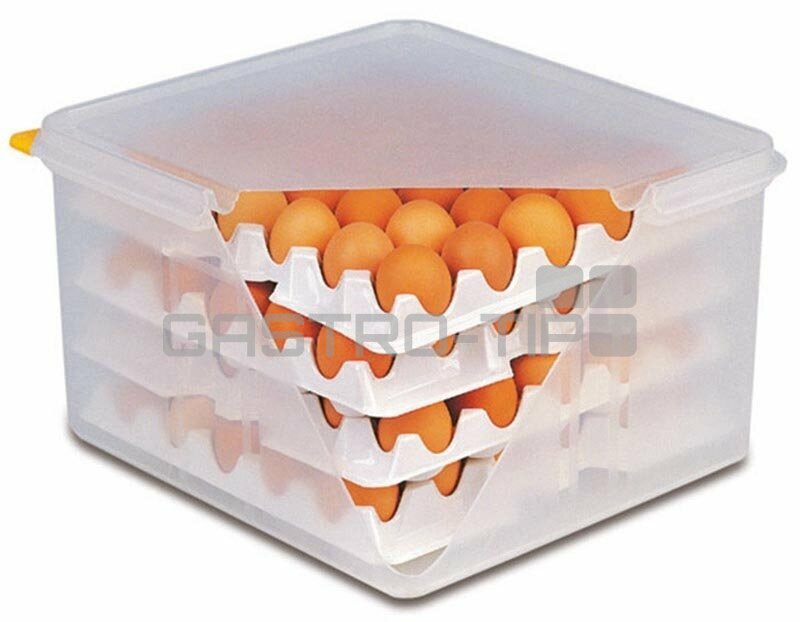 Kontejner na uschování vajec, provedení polyethylen. Součástí balení jsou 4ks vložek na rozložení vajec.