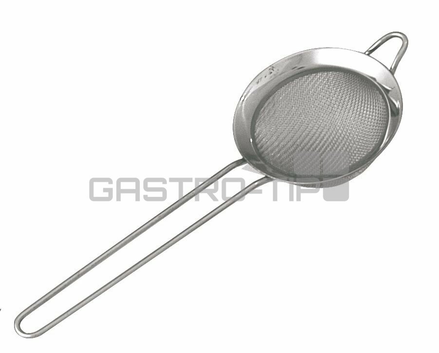 Profesionalní celonerezový cedník síto a rukojetí s možností zavěšení pro snadné přecedění látek.