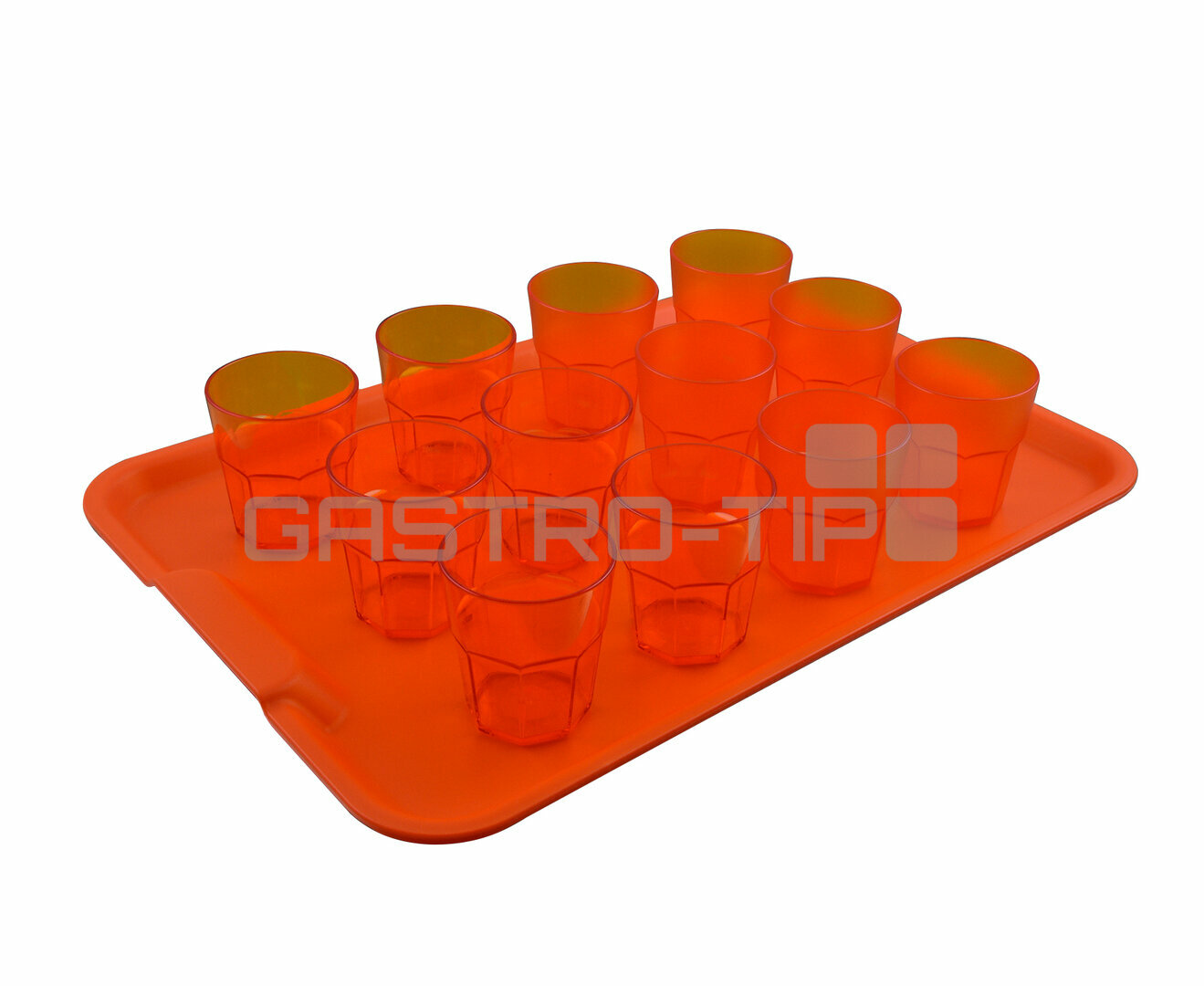 Polypropylenový servírovací tác. Dodáván v bílé, černé, žluté, červené nebo oranžové barvě. Rozměry tácu jsou 530 x 370 mm.  Podnosy vhodné pro restaurace, nemocnice, samoobsluhy a školní jídelny. Vynikající odolnost proti nárazu. Odolává teplotám od -40 °C do + 80 °C. Podnosy jsou vhodné do myčky.