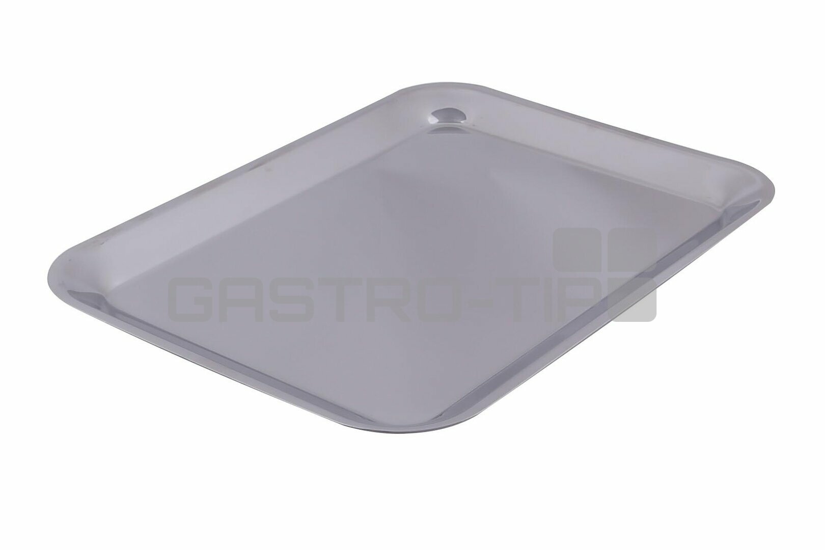 Lisovaný nerezový tác o síle materiálu 1 mm s oblými rohy.