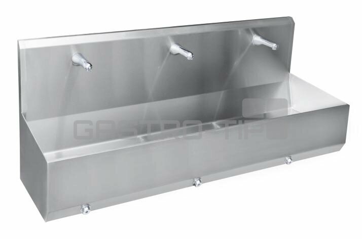 Mycí žlab v nerezovém závěsném provedení. Ovládání spouštění vody kolenovým ventilem. Odpad je umístěn vždy uprostřed délky mycího žlabu. Samostatné kolenové spouštění pro každou pozici. Směšovací ventil pro nastavení teploty vody