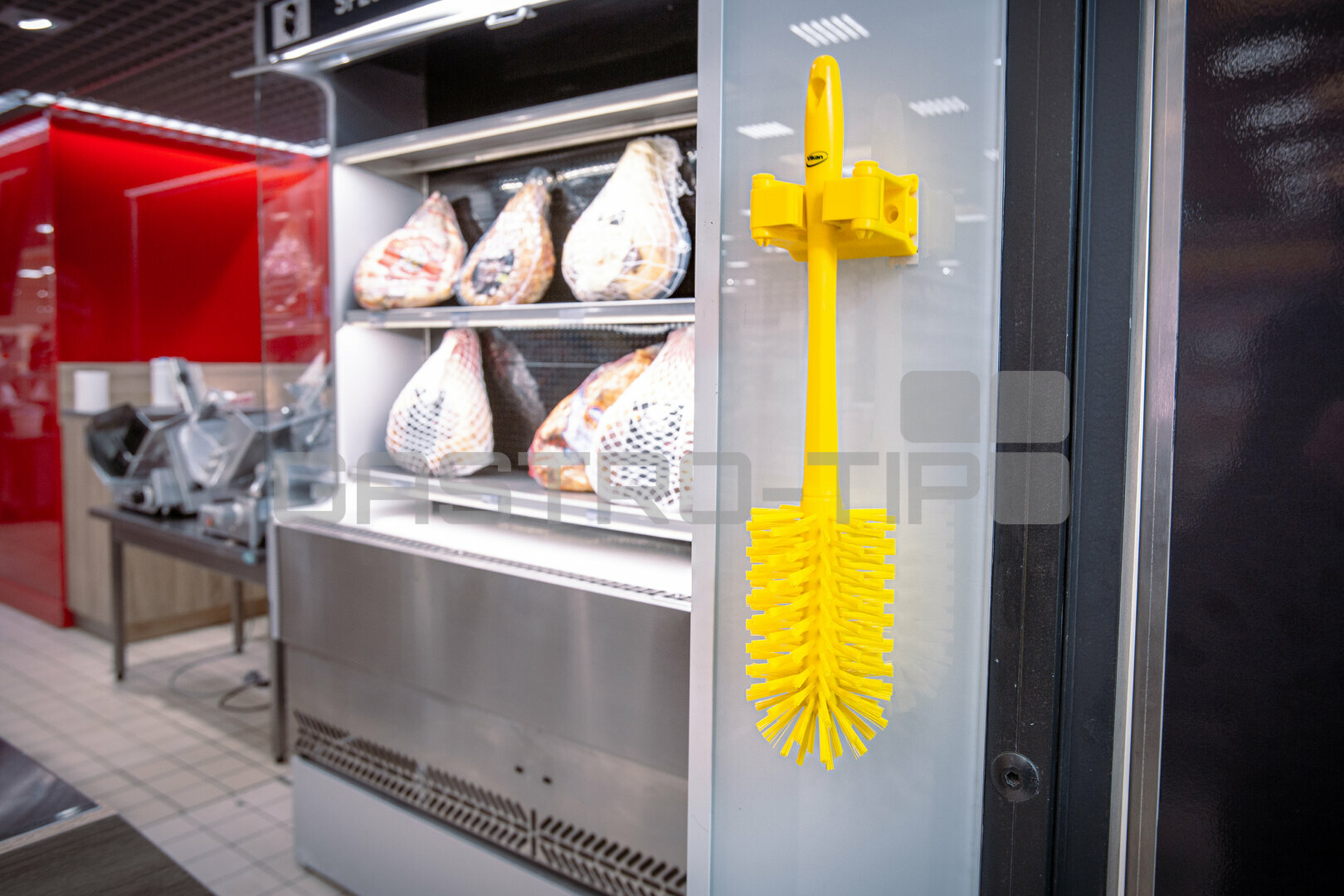 Tato červená svorka k nástěnnému držáku je ideálním doplňkem pro organizaci vašich čisticích potřeb a přispívá k udržení pořádku ve vašem pracovním prostoru.