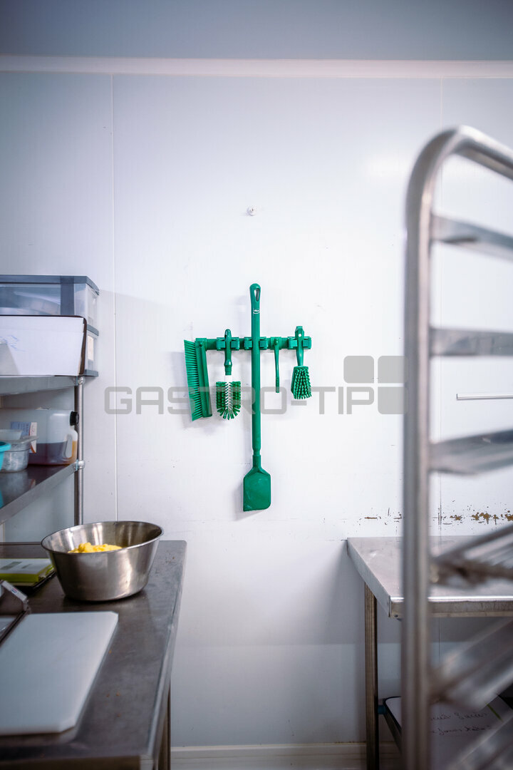 - Funkce: Svorka slouží k upevnění na nástěnný držák a umožňuje bezpečné uchycení čisticích nástrojů a potřeb.