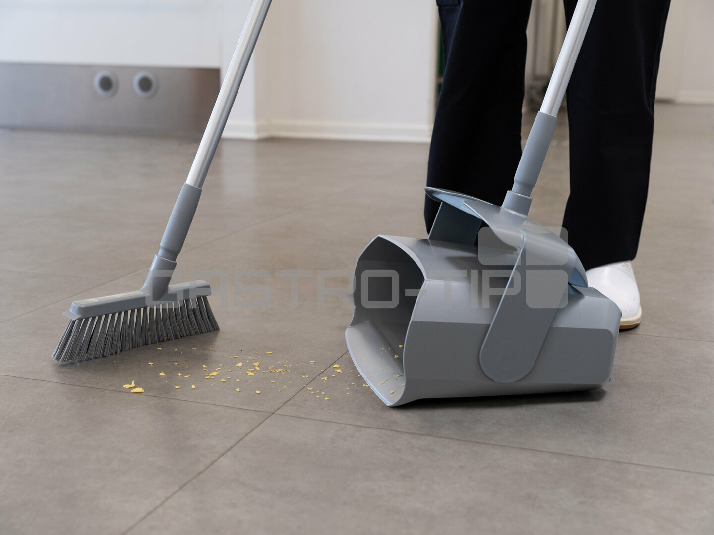 Tato pevná lopatka se velmi snadno ovládá jednou rukou, zatímco druhou drží smeták. Vyprazdňování je stejně snadné jako používání – víko lze uzamknout zatlačením rukojeti dozadu, dokud nezapadne na místo.