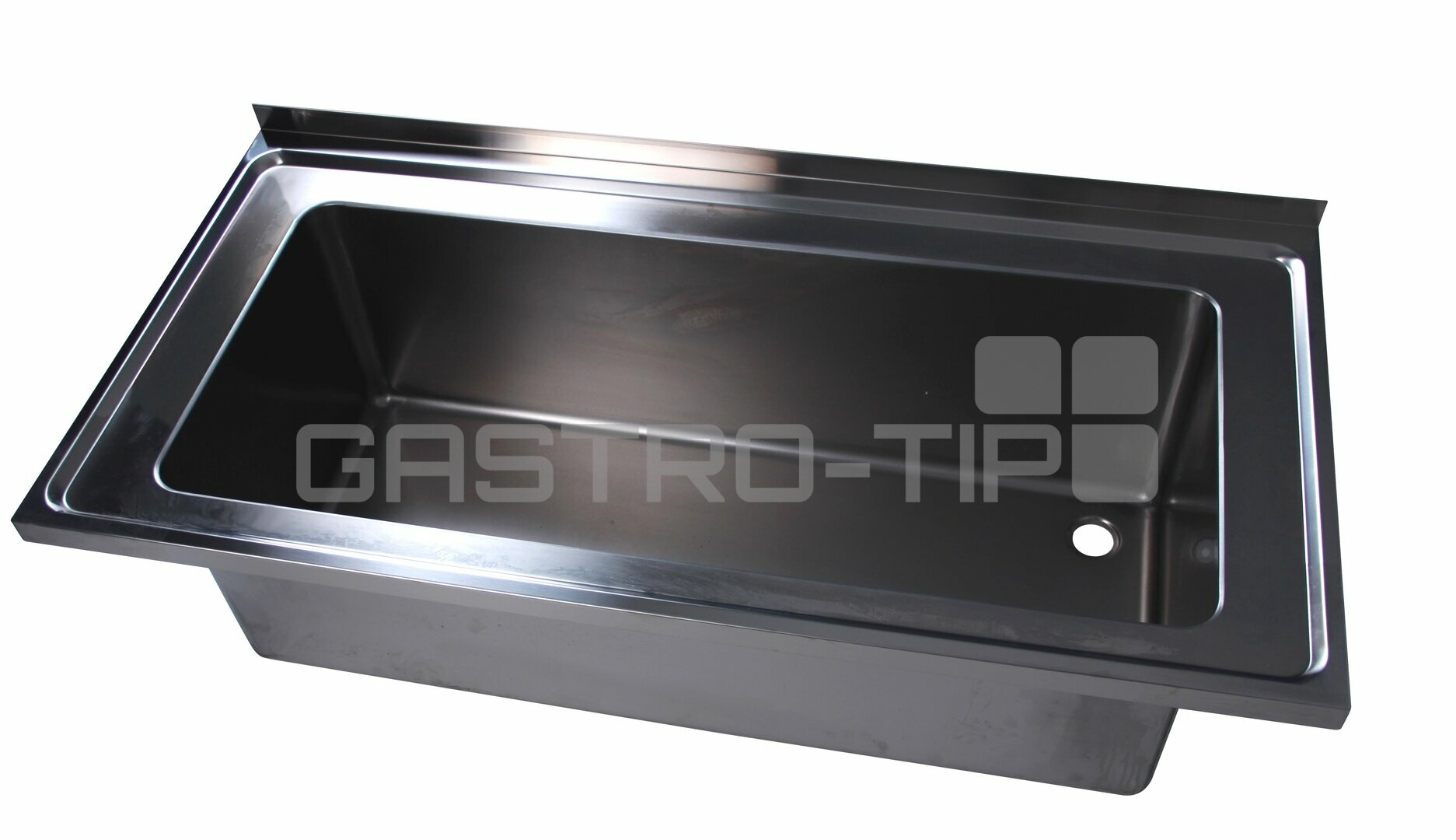 Prolisovaná dřezová deska s jedním velkým vařeným dřezem (oblé rohy). Provedení se zadním (jednoduchým) lemem 40mm.