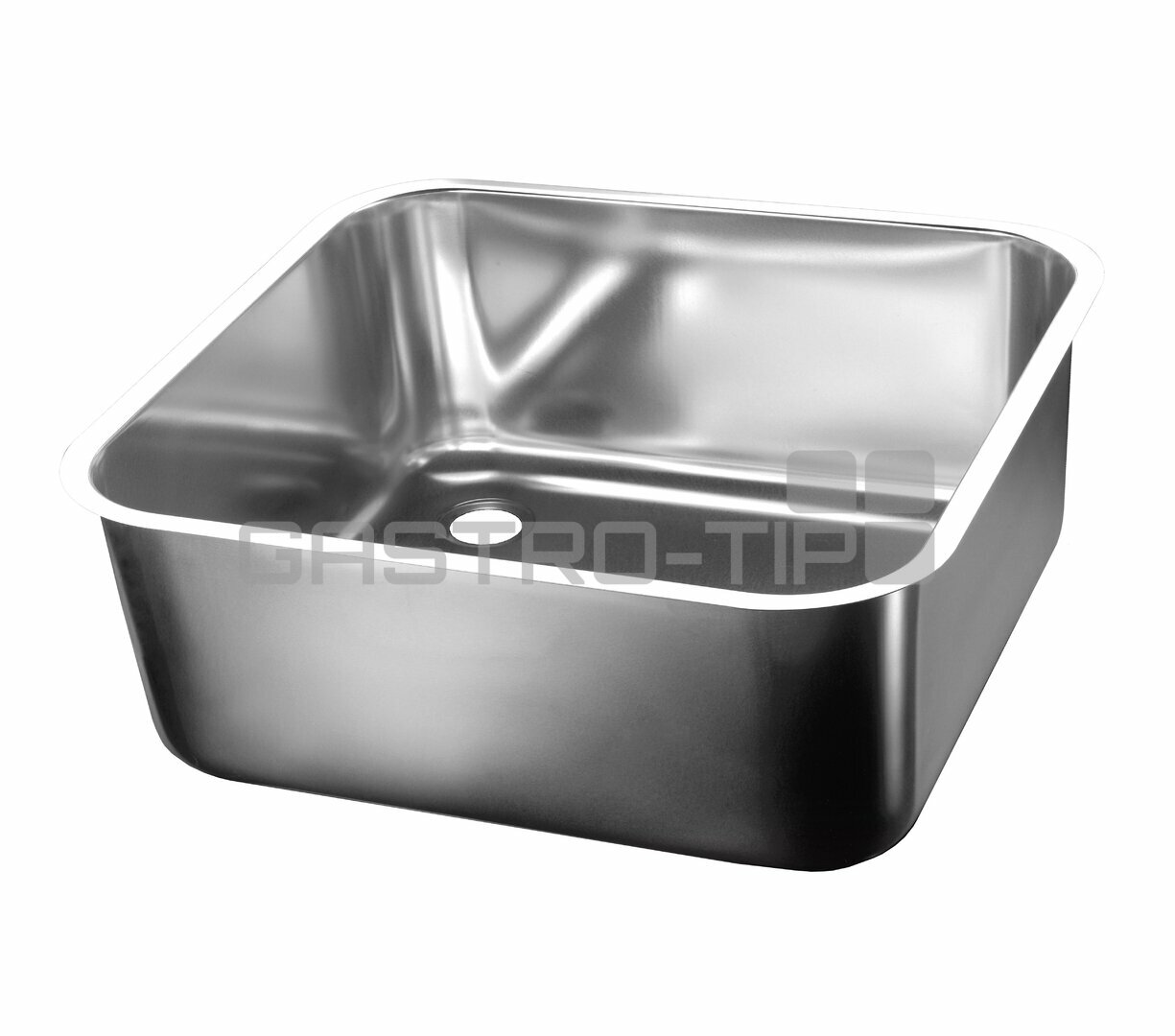 Nerezový lisovaný dřez s plochým okrajem pro vevaření do desky. Materiál AISI 304 (1.4301) s povrchovou úpravou "lesk".