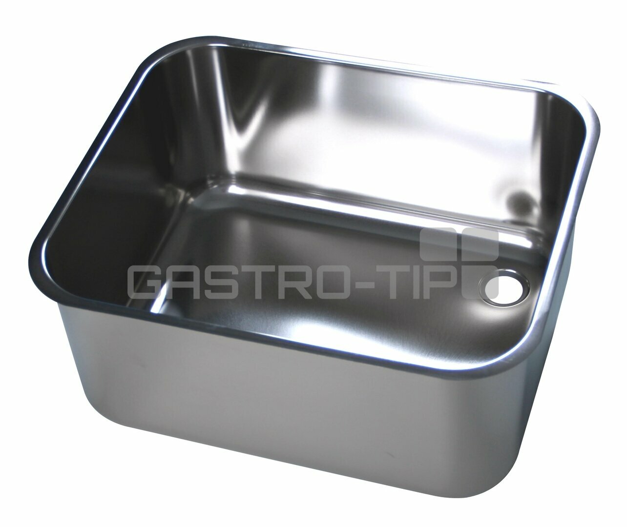Nerezový lisovaný dřez s plochým okrajem pro vevaření do desky. Materiál AISI 304 (1.4301) s povrchovou úpravou "lesk".