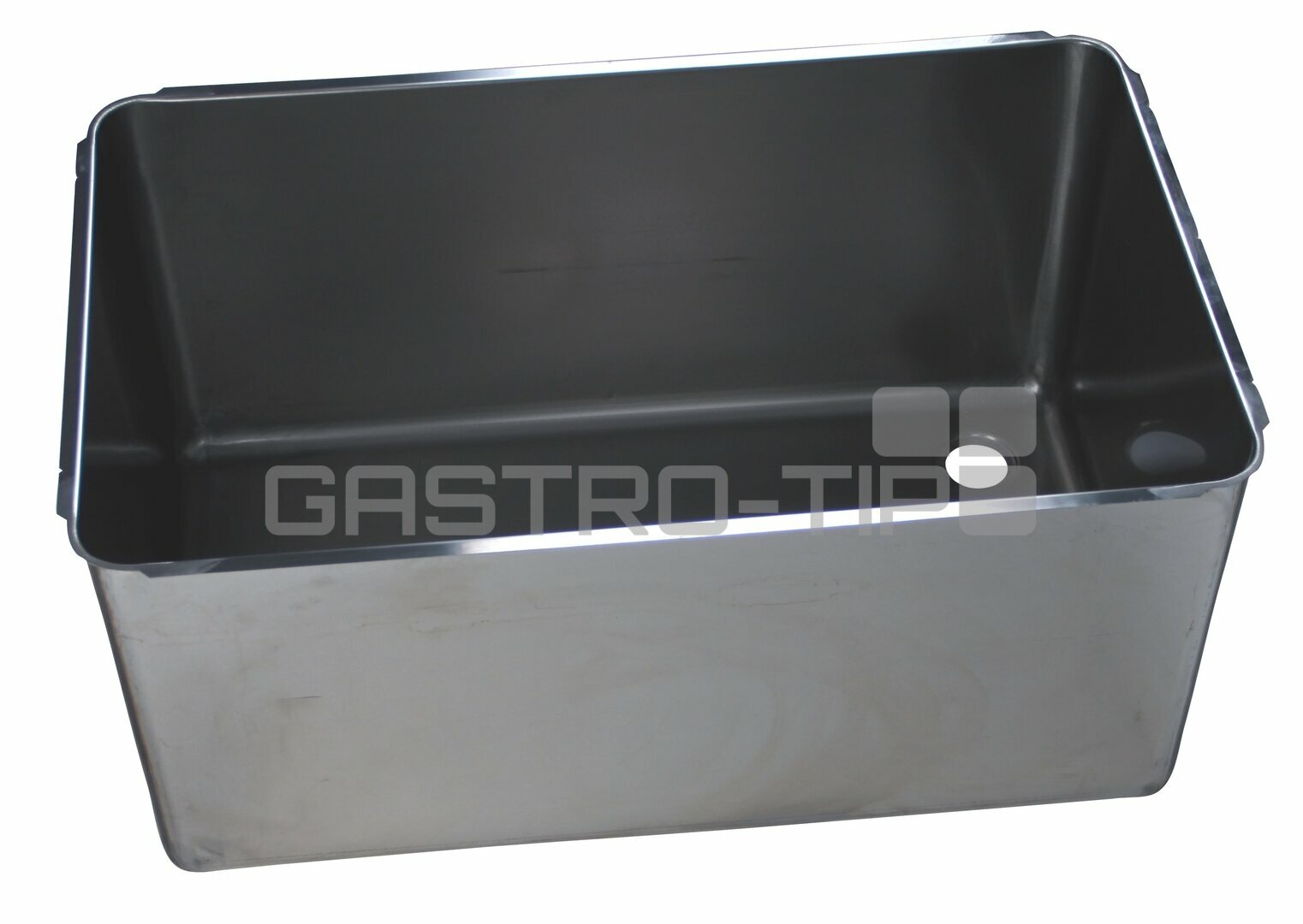 Nerezový vařený dřez s plochým okrajem pro vevaření do desky. Materiál AISI 304 v matném provedení.