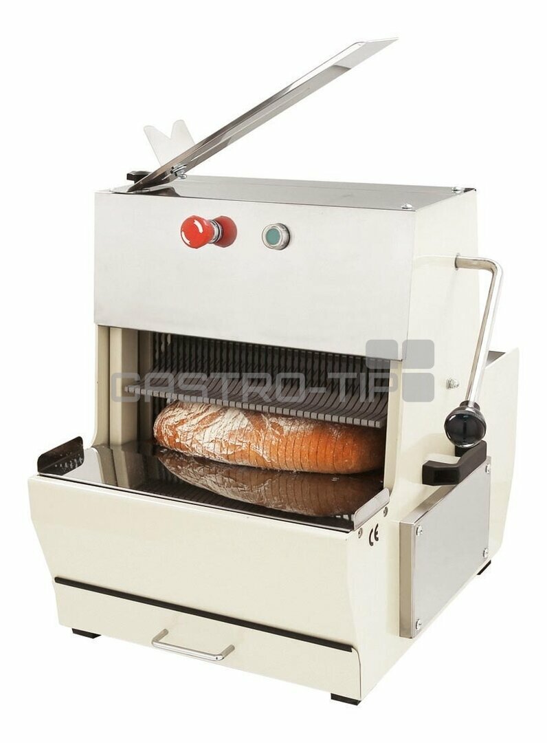 Šikmá balící police usnadní práci při balení nakrájené suroviny. Pohon nožů je zajišťován napájením o 230 V s příkonem 0,25 kW. Kráječ chleba je vyroben z lakovaného kovu, dotykové plochy jsou z nerezové oceli. Zařízení je svojí konstrukcí určeno pro lehčí gastronomické provozy a zejména pro země, kde mají přísné bezpečnostní předpisy. Nenáročný na potřebný prostor.