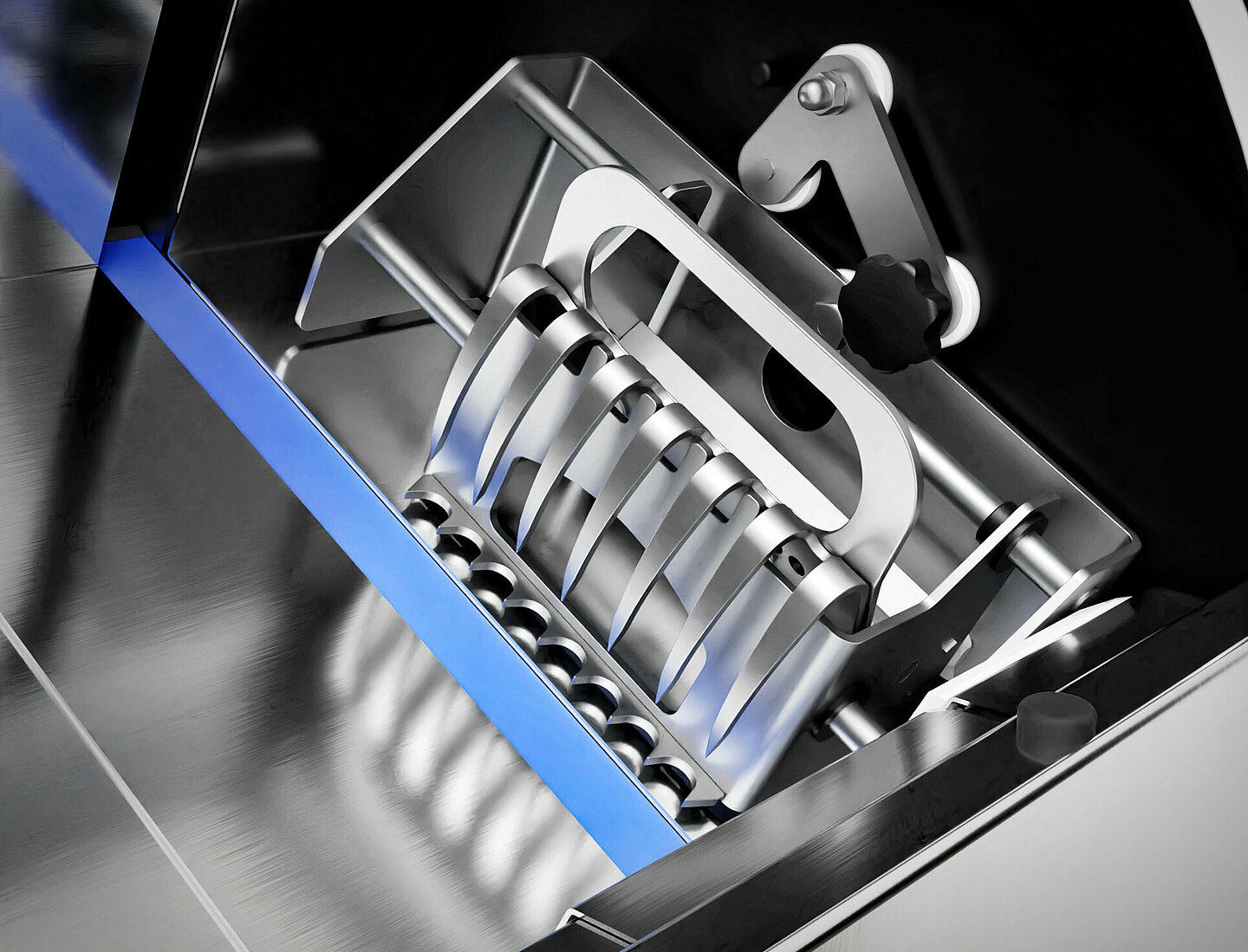 Průměr nože je 260 mm. Vyroben je z extrémně odolné čepeli (speciální vrstva a originální ošetření MHS). Sílu krajíce si můžete libovolně a snadno nastavit po 1 mm na displeji jednoduché membránové klávesnice od 4-24 mm. Možnost zvolení funkce dělení a půlení bochníků.