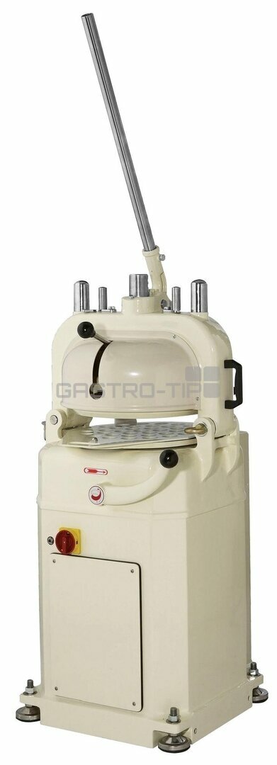 Dělička těsta s vykulováním HL-21030A vhodná pro přesné dělení a následné vykoulení těsta na 30 dílků, snadné nastavení požadované hmotnosti porce (rozpětí 32-70g) odvozené od celkové hmotnosti vsádky (maximální vsádka 960-2100g). Dělička je vhodná pro zpracování všech základních typů těst. Snadné a bezpečné ovládání a nastavení pomocí ovládacích pák, těsto se vkládá na tvarované PE plato s prolisovanými klonky (30 dílků), snadná manipulace. Zařízení je v robustním litinovém provedení zaručujícím stabilitu, vzhledem k vibracím při vykulování je nutno kotvení zařízení k podlaze (případně podložit nohy silnou fixační gumou). Minimální požadavky na údržbu (možnost vyklopit vrchní pracovní hlavu - servisní úkon).