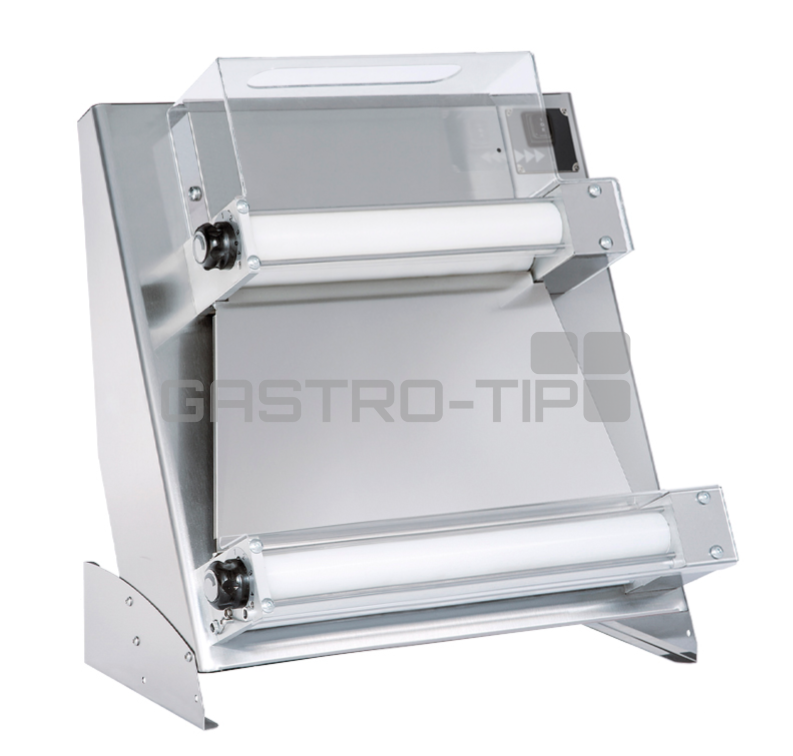 Vyvalovací lisy na těto. Model je komplet v robustním celonerezovém provedení, 2 páry polohovatelných plastových lisovacích válců uložených paralerně nad sebou, bez tvarovacího zařízení vhodné pro větší hmotnosti, hranatý a delší tvar těsta. .....