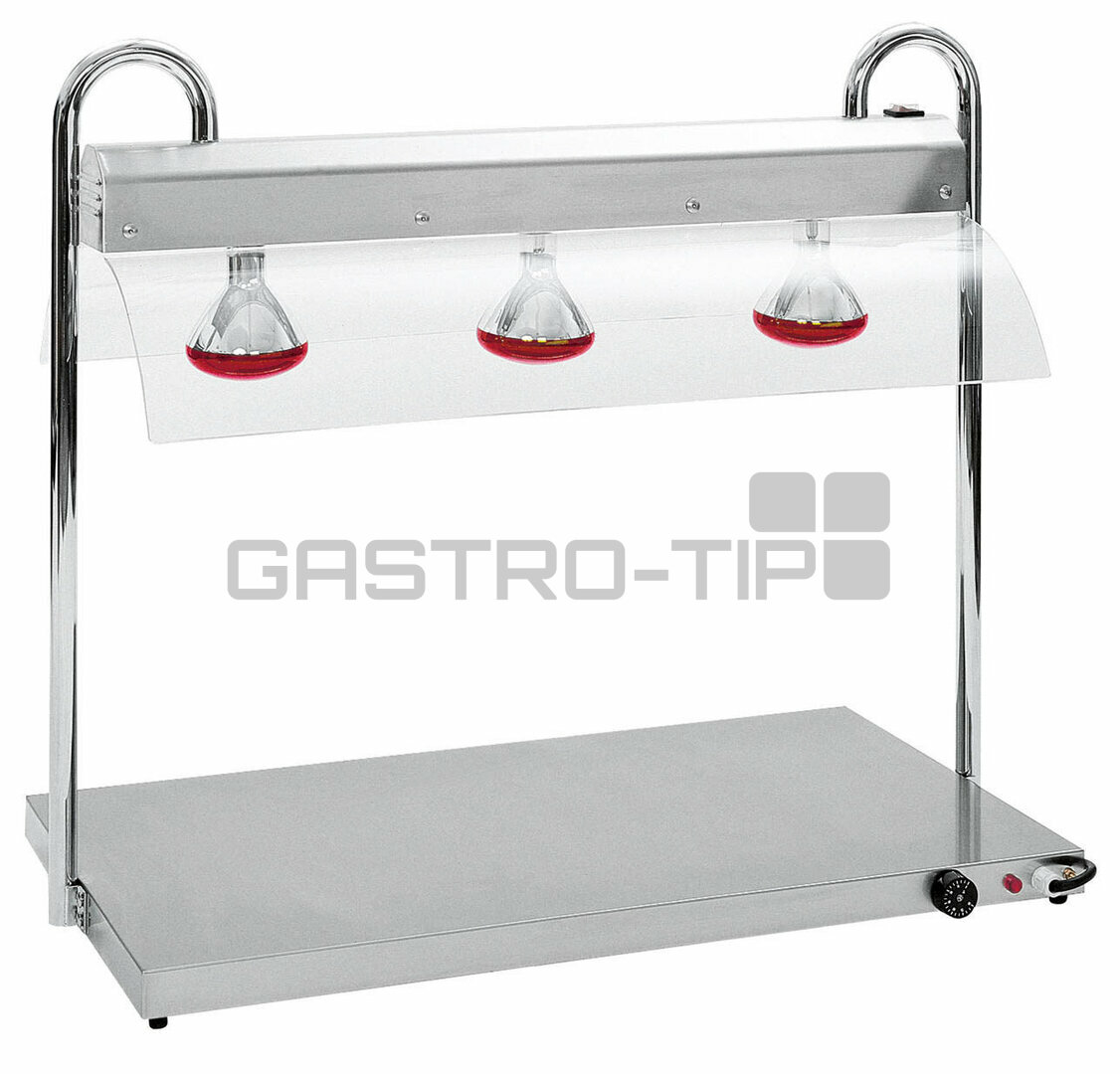 robustní provedení, ohřevná deska (regulace teploty) s infračervenou lampou a ochranným/hygienickým bezpečnostním zákrytem dvě nezávislá ovládání (samostatné pro lampu a vyhřívací desku)
