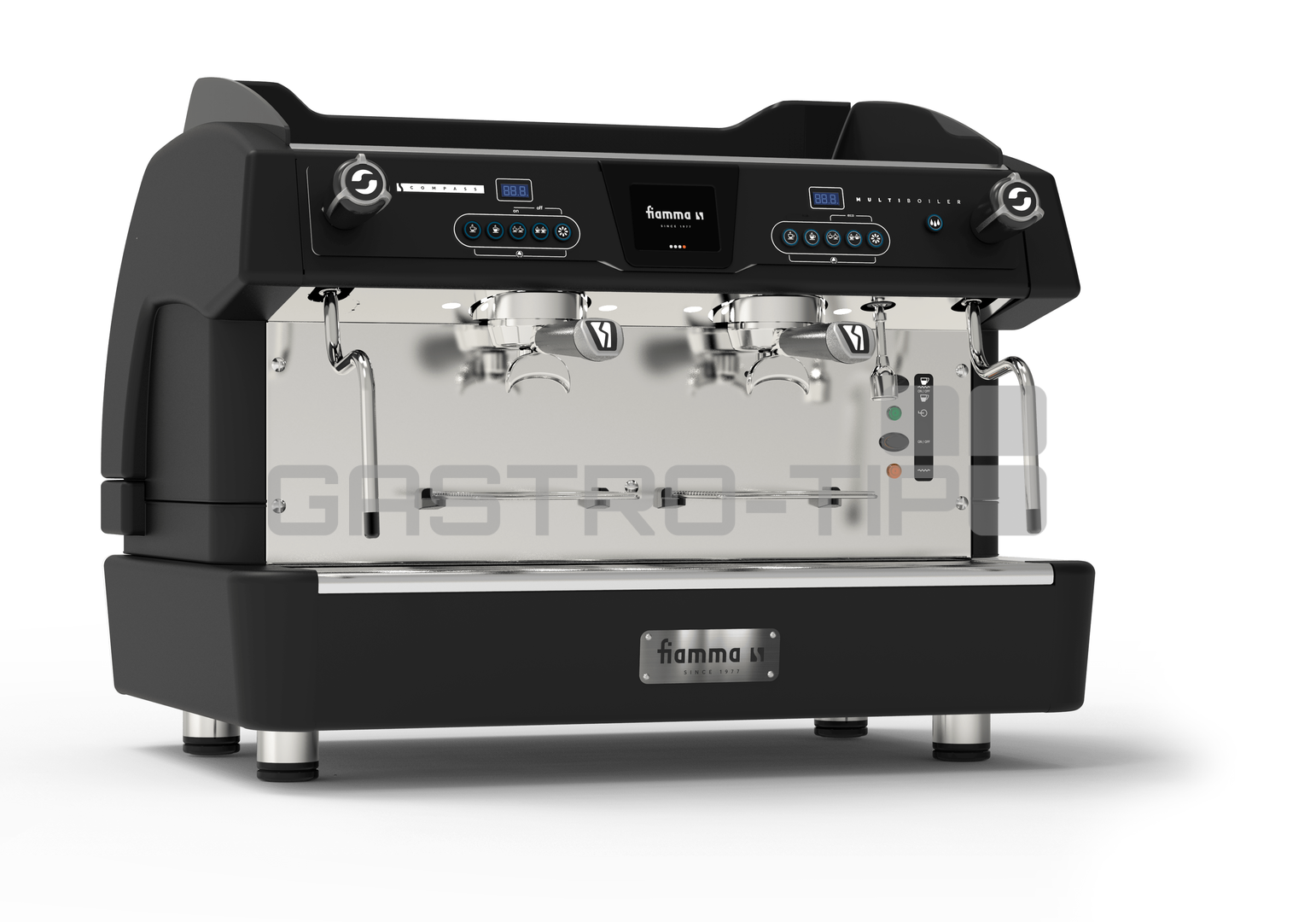 Profesionální dvouskupinový kávovar COMPASS Multiboiler - dva samostatné boilery pro páky (2x 0,5l /1,5kW) a jeden objemnější (1,5l/3kW) pro dostatečné množství k výdeji horké vody a páry s individuální a velice přesnou elektronickou regulací teploty (odchylka do 0,8°C). Snadné programovatelné ovládání, plně barevný dotykový ovládací panel a elegantní LED osvětlená ovládací tlačítka a prostor pod skupinou. Komplexní integrovaný software s programem BrewPilot, volba spuštění systému Save energy pro automatické řízení spotřeby (snížení celkového příkonu až o 50% a výraznou úsporu energie tím i připravenost kávovaru. Systém pro kontrolu výdeje, automatické mycí cykly, funkce autodiagnostiky, upozornění na zavápnění.