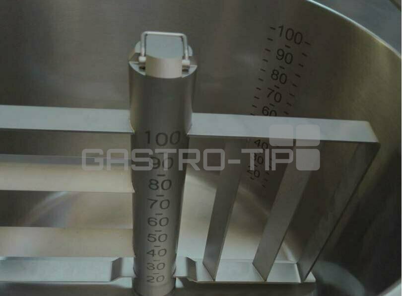 Měřicí ryska, na obvodu kotle, případně i přídavná tyč s ryskou (volitelně), která může být zavěšena přes okraj konvice a je praktickou pomůckou při měření obsahu konvice. Jemná stupnice umožňuje přesné měření. Pražení mandlí je snadné a pohodlné. Skutečné vaření